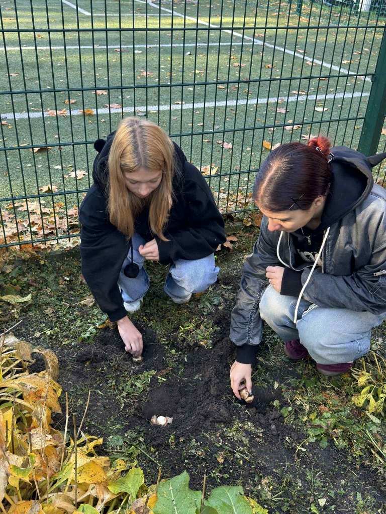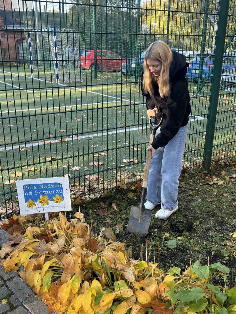 Wolontariusze z naszej szkoły w ramach akcji Pola Nadziei posadzili sadzonki żonkili. Żonkile są symbolem solidarności i wsparcia osób chorych. Mamy nadzieję, że wiosną żonkile zakwitną i będą przypominały o wsparciu i sile dobroci.