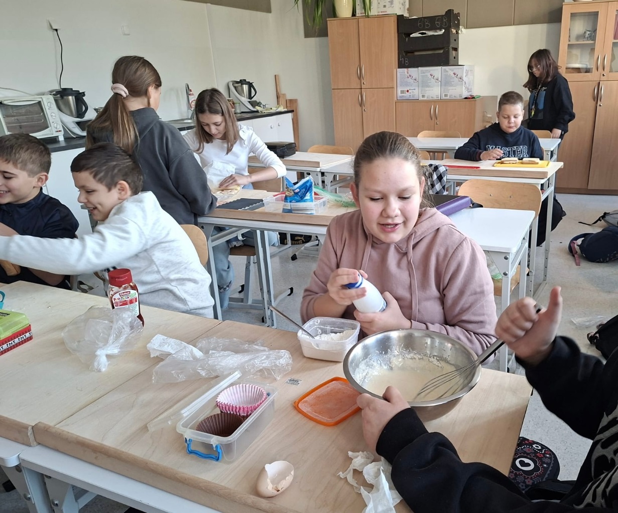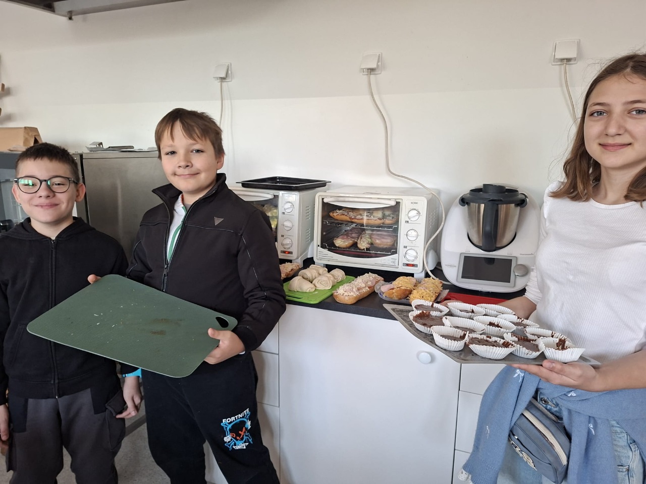 Uczniowie fantastycznie wykorzystali czas 45 minutowej lekcji, podczas której przygotowali i upiekli cynamonki, babeczki oraz pyszne zapiekanki. Zdążyli też wyczyścić pracownię i umyć naczynia. Świetna robota, gratulacje!! Było smacznie!