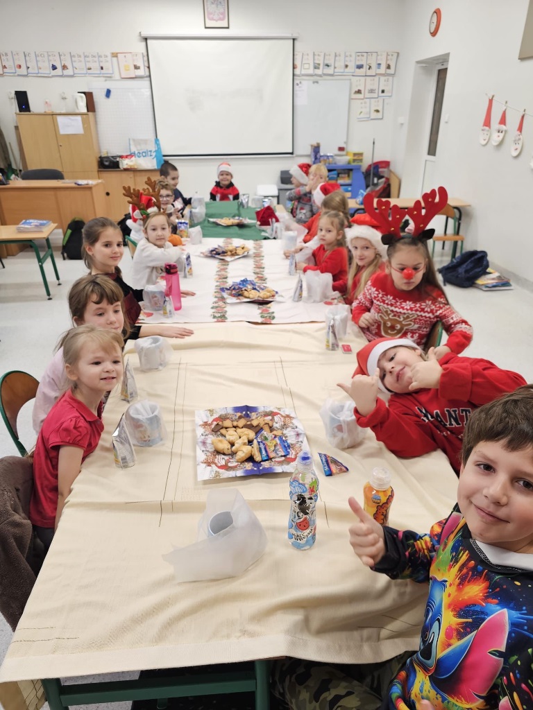 Uczniowie tego dnia przyszli ubrani w czerwone barwy z dodatkami o świątecznym charakterze. Nie zabrakło także mikołajkowych upominków. Rada Rodziców dorzuciła do worka Świętego Mikołaja słodką niespodziankę — lizaki dla każdej klasy, co wywołało mnóstwo uśmiechów.