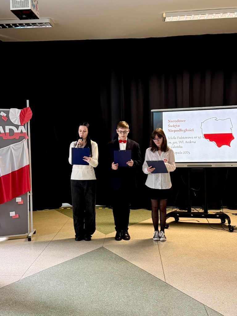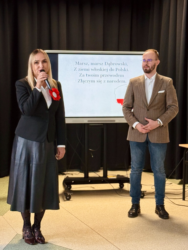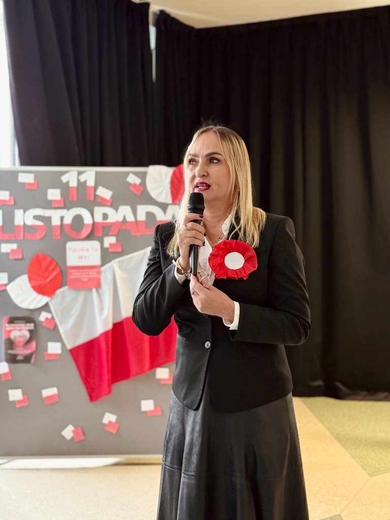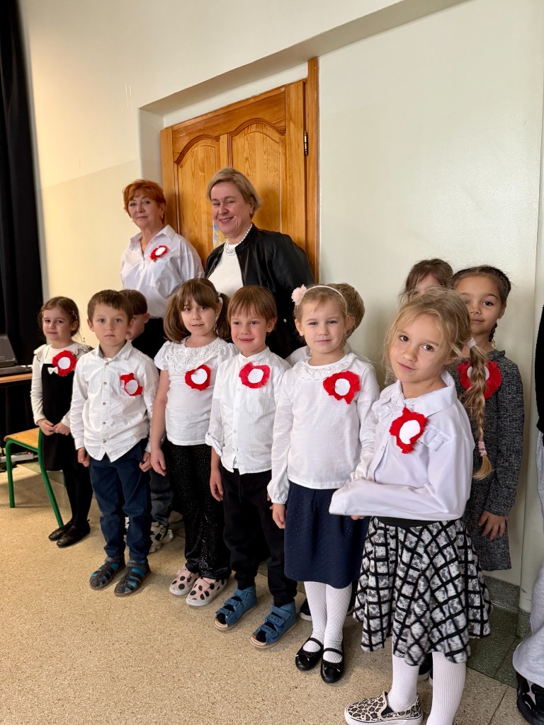 Dziś w naszej szkole obchodziliśmy Narodowe Święto Niepodległości. Podczas apelu przypomnieliśmy sobie historię naszego kraju i to, jak ważna jest wolność. Na początku wspólnie zaśpiewaliśmy pieśń Pierwszej Brygady, a o 11:11, jak co roku, odśpiewaliśmy Hymn Polski. Później ustawiliśmy się do zdjęcia, tworząc tradycyjną żywą flagę Polski na tle konturu naszej ojczyzny.