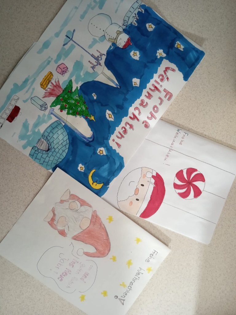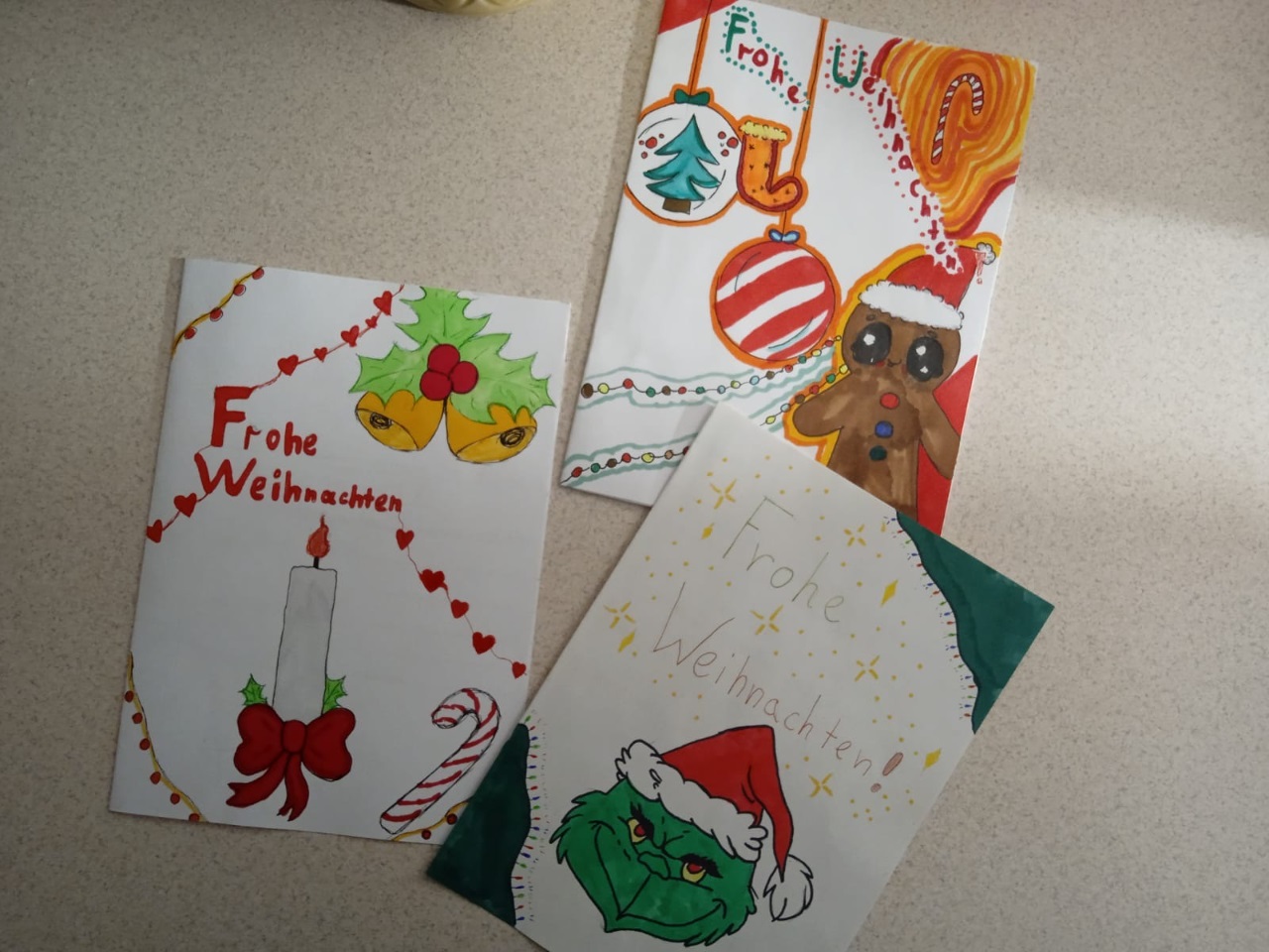 Tradycyjnie uczniowie naszej szkoły wymienili się ręcznie wykonanymi kartkami bożonarodzeniowymi w języku niemieckim z inną szkolą. W tym roku kartki świąteczne otrzymaliśmy od uczniów Szkoły Podstawowej im. św. Stanisława Kostki w Moszczenicy. Na parterze naszej szkoły można obejrzeć kartki, które dostaliśmy.
